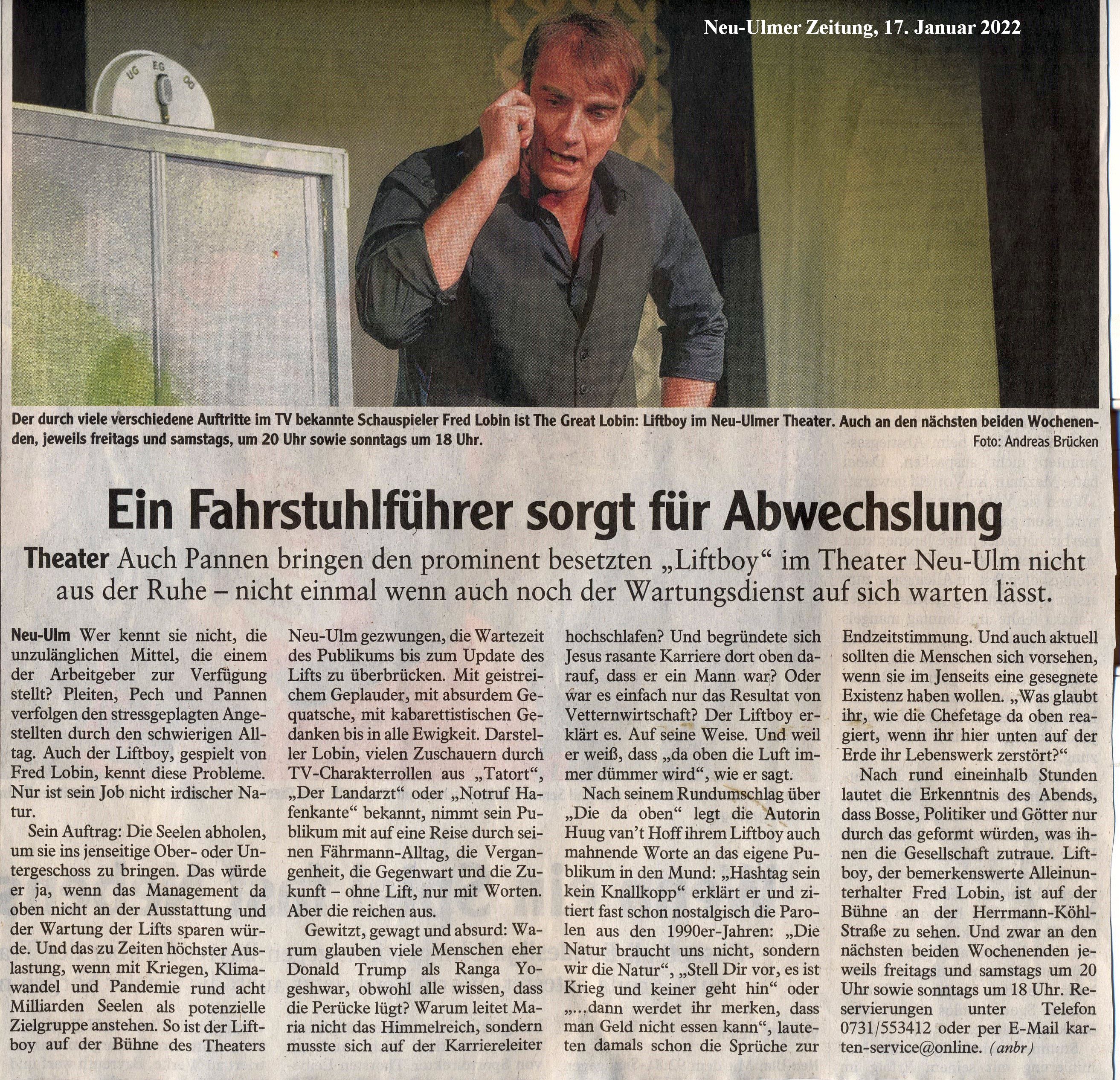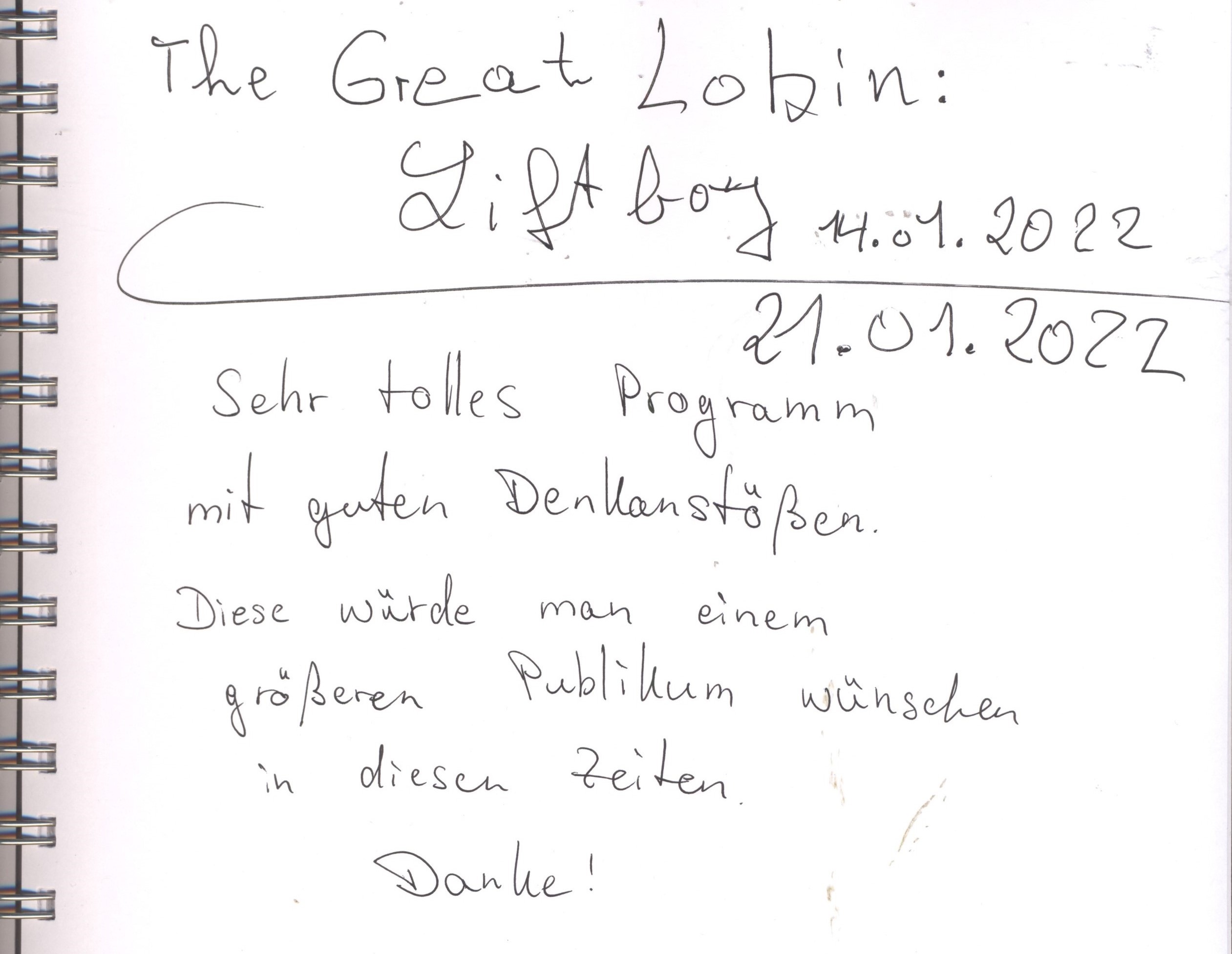 Der Fahrstuhlführer (neudeutsch: Liftboy) verrichtet seinen Job immer mit dem professionellen Lächeln des Service-Dienstleisters.Auch Pannen bringen ihn nicht aus der Ruhe, ganz egal, wo wir zusammen steckenbleiben - wie an diesem Abend mal wieder, an dem auch noch der Wartungsdienst auf sich warten lässt.