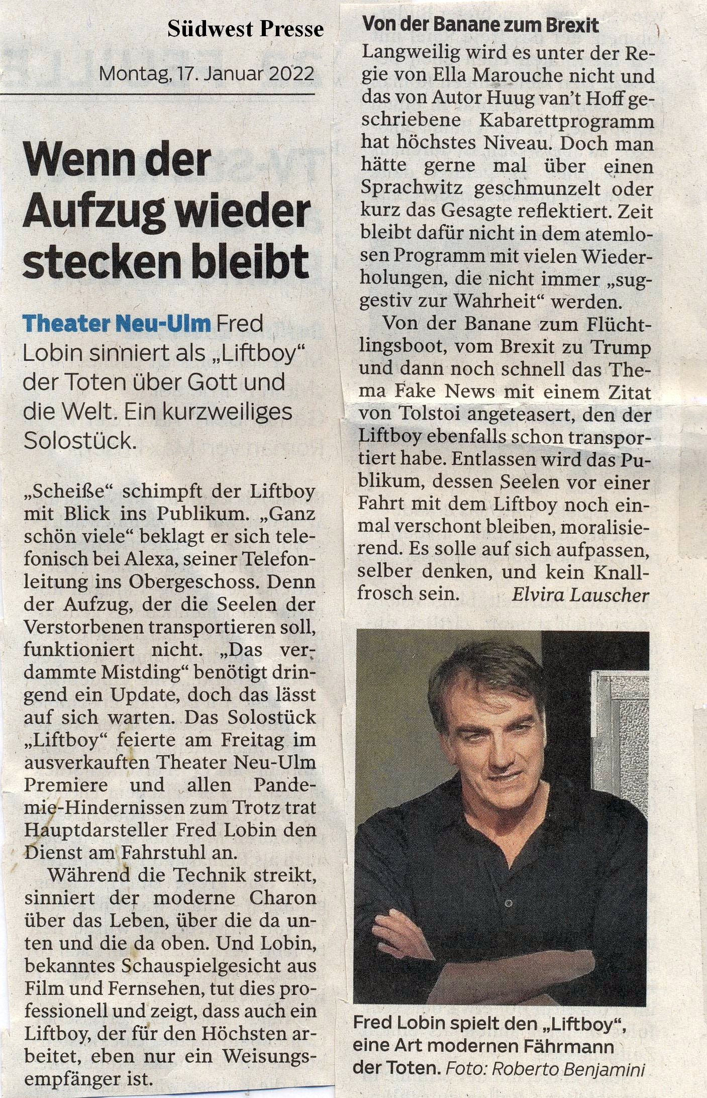 Und da kommt der Liftboy, Bruder im Geiste des Taxifahrers und des Friseurs, ins Plaudern