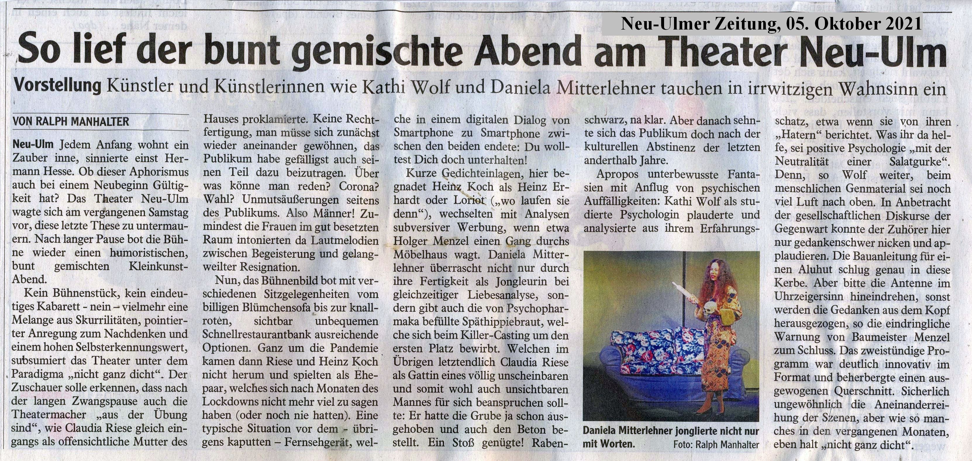 Unsere Bühne spiegelt die Welt - "nicht ganz dicht" - vom Autoren-Duo "Riese & Ko"