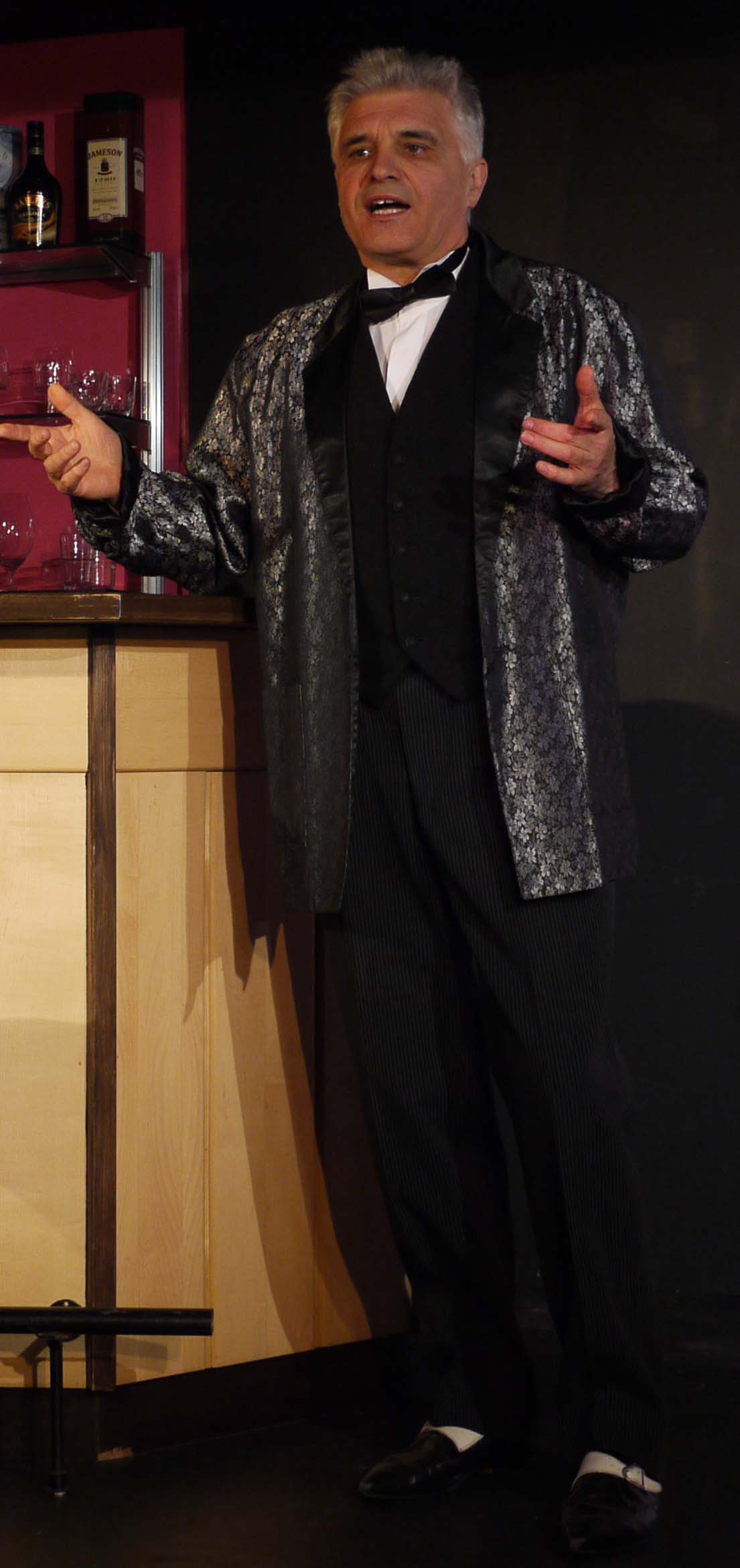 Publikumsstimmen:"Wir wollen auch auf einem Ozeanriesen leben!!! Fehlen würde uns nur `ne DS! Wenn überhaupt... Danke für ein Super Theatererlebnis Antje Blüm und Stephan Borowski (22. Mai 2009)"Eine bemerkenswerte Geschichte, sehr einfühlsam und melancholisch erzählt und mit Filmausschnitten wunderbar untermalt...." Veronika Simmendinger (18. April 2009) "Es war ein kleines Kunstwerk, alle Achtung! Ich kannte das Stück von einem Hörbuch." Sigrid Sander (17. April 2009) "Die Legende vom Ozeanpianisten - Novecento: intensiv, beeindruckend gespielt, einfach großartig! zwei unleserliche Unterschriften (17. April 2009) "Liebes AuGuSTheater-Ensemble, vielen lieben Dank für den schönen Abend! Wir, die Niethammers aus Augsburg, haben uns sehr amüsiert und werden in Zukunft wieder zu Ihrem treuen Zuschauerstamm zählen, zu dem wir in den letzten Jahren leider nicht zählen konnten. Nochmals vielen Dank, alles Gute und bis bald. Das Stück mit Ihnen, Herr Koch, war Klasse. Marlies Niethammer, Daniel Elias Niethammer, Barbara Sedlmeier (17. April 2009) |