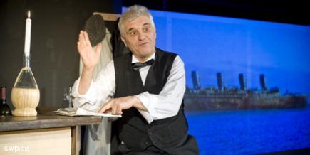 Ein Anekdotenreigen an der ThekeVon Uli Landthaler / Südwest Presse, Montag, 6. April 2009Heinz Koch erzählt am Augus-Theater Neu-Ulm die Legende vom Ozeanpianisten ![]() Das Theater Neu-Ulm spielt "Novecento - die Geschichte vom Ozeanpianisten." Eine willkommene Abwechslung zum gewohnten Boulevard. Diese "Legende vom Ozeanpianisten" ist ein dankbarer,