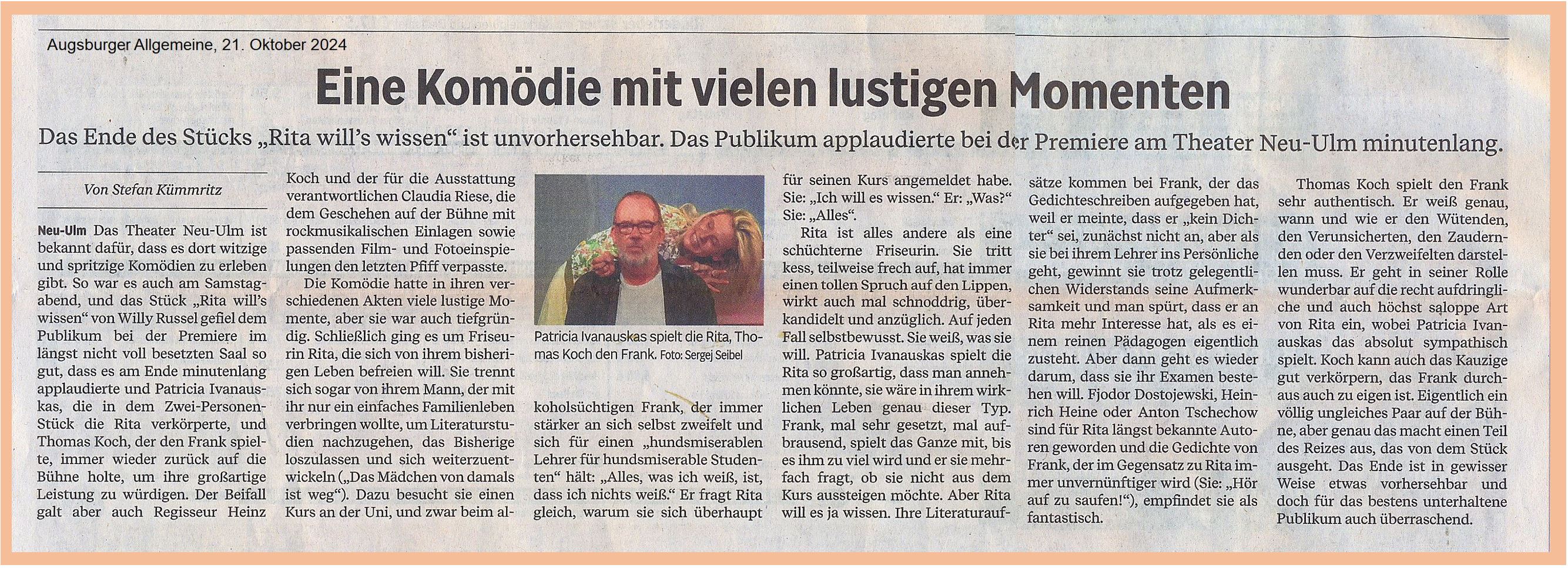 Für Frank und Rita hat ihre Begegnung erhebliche Konsequenzen. Das Publikum hat Spaß an dem vom Wirbelwind Rita angerichteten Chaos.